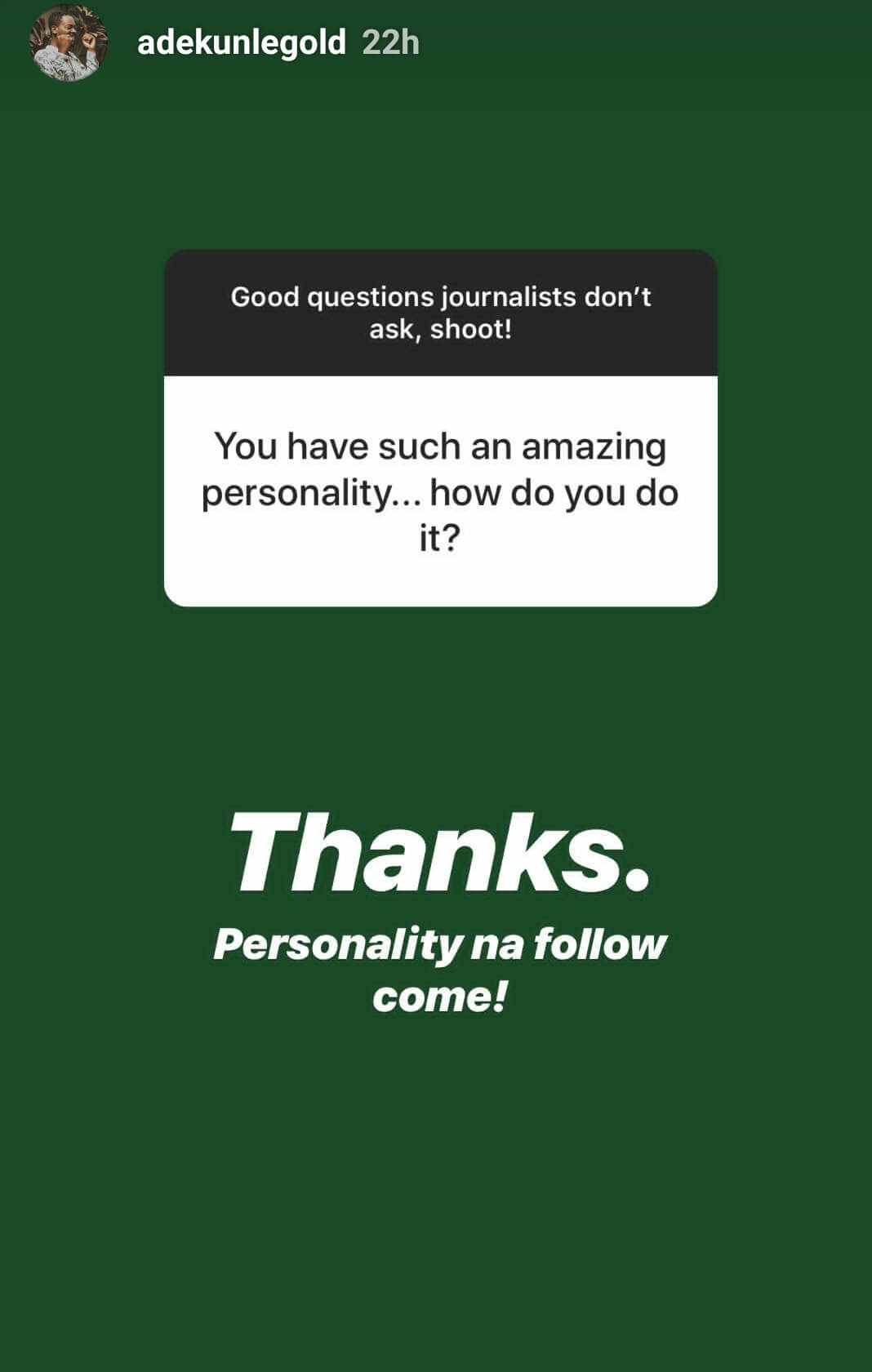 During his Q&A session on Instagram, yesterday, 27th of April, Adekunle Gold was asked about the inspiration behind the hit record and the singer revealed the song was inspired by the story of a one-night stand but in this case, he was the one that caught feelings.
