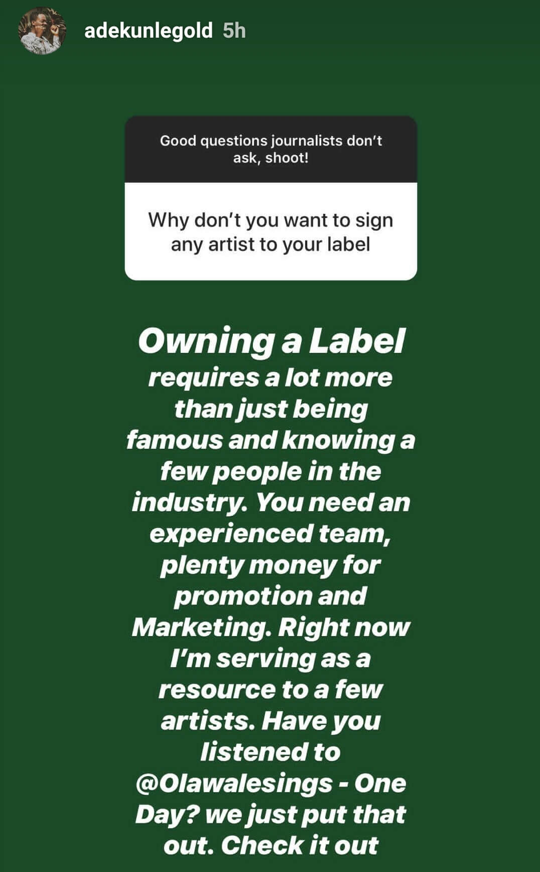 The singer also revealed he’ll be releasing a new album very soon when asked about it. According to Adekunle Gold, his response was “This Year”.